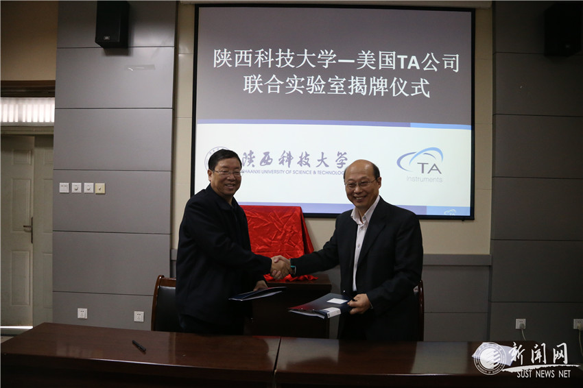 鄭恩讓和楊勝鷹分別代表校企雙方簽訂“陜西科技大學—美國TA儀器聯(lián)合實驗室”合作協(xié)議。