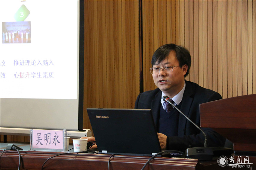 吳明永的報(bào)告從改革緣起、辦學(xué)理念與改革思路、改革措施與成效、改革特色四個(gè)方面展開(kāi),尤其是專(zhuān)題化教學(xué)、項(xiàng)目化實(shí)踐、多元化考試三個(gè)方面的綜合改革思路和實(shí)踐。思政課專(zhuān)題化教學(xué)對(duì)教學(xué)內(nèi)容、教學(xué)方案、教學(xué)設(shè)計(jì)等都進(jìn)行了優(yōu)化整合,極大增強(qiáng)了課堂吸引力;項(xiàng)目化實(shí)踐注重教學(xué)目標(biāo)的明確性、教學(xué)內(nèi)容的系統(tǒng)性、教學(xué)方法的多元化以及教學(xué)資源的本土化;多元化考試,一方面充分利用“互聯(lián)網(wǎng)+”優(yōu)勢(shì),采取題庫(kù)機(jī)考和隨堂開(kāi)卷考試相結(jié)合的方式,實(shí)現(xiàn)思政課考試“一人一卷”,一方面結(jié)合學(xué)生專(zhuān)業(yè)特點(diǎn),實(shí)現(xiàn)思政課與專(zhuān)業(yè)的有機(jī)結(jié)合,真正提高了思政課的針對(duì)性和親和力。通過(guò)教學(xué)改革的探索與實(shí)踐,教學(xué)效果明顯好轉(zhuǎn),教師科研能力明顯提高。吳明永教授主持的“高校思政課‘專(zhuān)題化教學(xué)、項(xiàng)目化實(shí)踐、多元化考試’綜合改革探索與實(shí)踐”獲得重慶市教學(xué)成果一等獎(jiǎng),改革舉措獲教育同行專(zhuān)家高度肯定,被《光明日?qǐng)?bào)》等主流權(quán)威媒體廣泛宣傳報(bào)道。