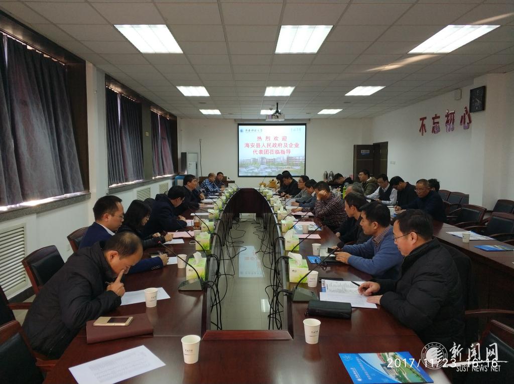 11月23日,江蘇省海安縣人民政府及企業(yè)代表團(tuán)一行25人來我校進(jìn)行科技洽談,就進(jìn)一步加強(qiáng)雙方產(chǎn)學(xué)研合作、推動(dòng)企業(yè)轉(zhuǎn)型升級(jí)進(jìn)行了深入交流,前沿院常務(wù)副院長(zhǎng)殷海榮教授主持了科技洽談會(huì)。