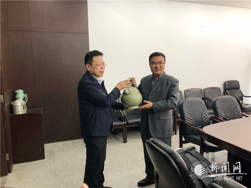 校黨委副書記楊欲曉代表學(xué)校向天津科技大學(xué)贈送倒流壺