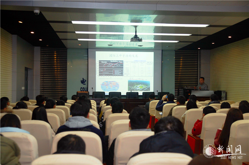 報告會上,孫志嘉首先從中子散射技術在物質結構和動力學性質研究反面的重要作用入手,介紹了中子源在現(xiàn)代科學研究以及工業(yè)生產(chǎn)中的應用價值。其次,他結合中子源在國際上的發(fā)展過程,介紹了中國東莞散裂中子源國家實驗室從申報到立項再到正式開工建設直至通過驗收的艱辛歷程。再次,孫志嘉系統(tǒng)講解了散裂中子源探測實驗所使用的關鍵設備,還就設備的調試和試運行效果與國際上其他實驗室做了對比,展示了我國在中子源探測方面取得的令人振奮的成就,提升了同學們對我國重大基礎科學研究能力的信心。最后他還闡明了散裂中子實驗室的建成對助推粵港澳大灣區(qū)的國家科技產(chǎn)業(yè)創(chuàng)新中心的建設,促進該區(qū)域科技創(chuàng)新及產(chǎn)業(yè)轉型升級的重要意義。