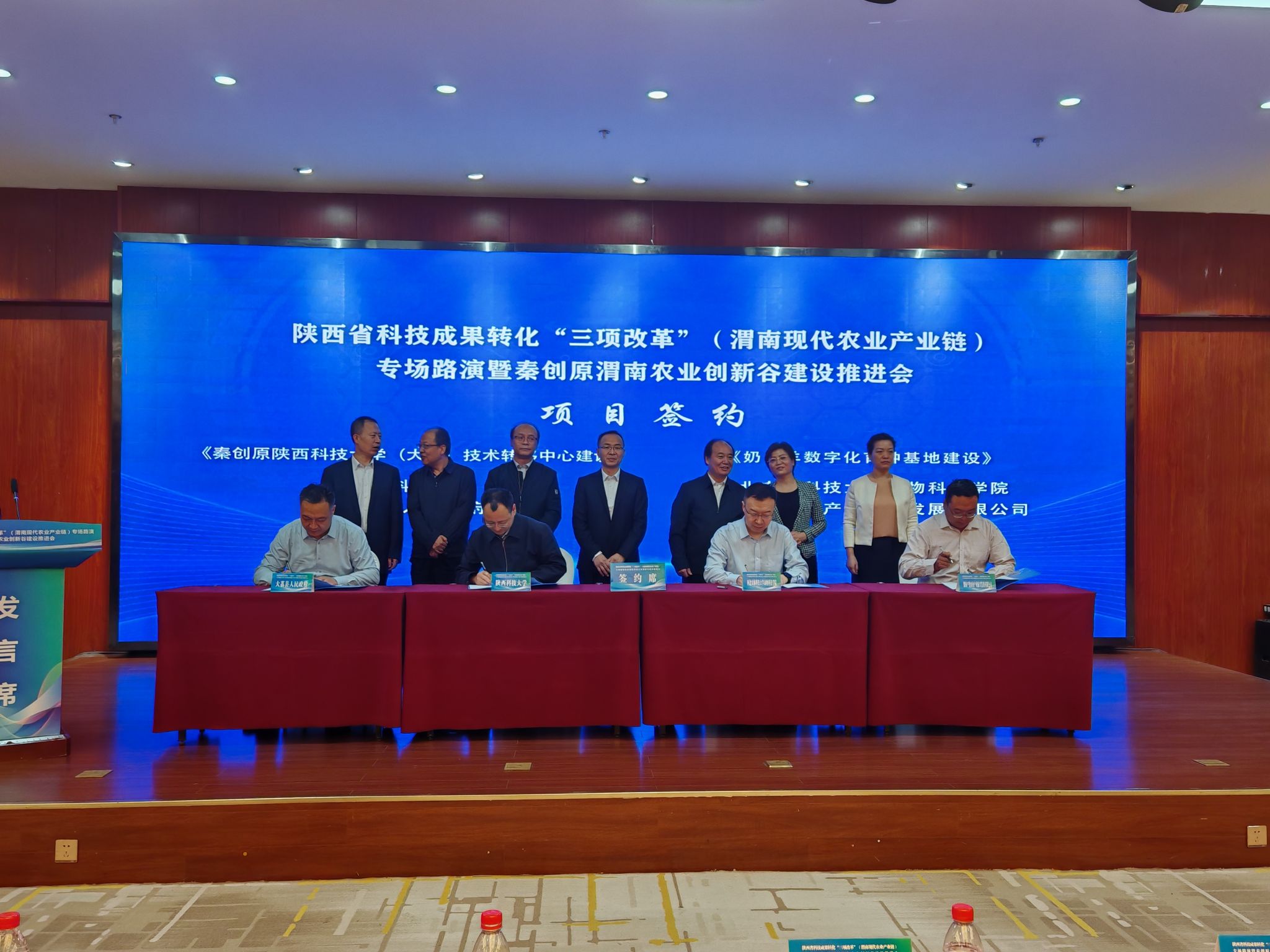 陜西省科技成果轉(zhuǎn)化“三項改革”(渭南現(xiàn)代農(nóng)業(yè)產(chǎn)業(yè)鏈)專場路演暨秦創(chuàng)原渭南農(nóng)業(yè)創(chuàng)新谷建設(shè)推進(jìn)會于10月16日上午在大荔縣舉辦。來自省市相關(guān)部門領(lǐng)導(dǎo)、駐地科研院所代表、科技企業(yè)代表等共聚一堂,共同探討交流創(chuàng)新思想、創(chuàng)新技術(shù),推動成果轉(zhuǎn)化落地、項目合作、產(chǎn)業(yè)融合。