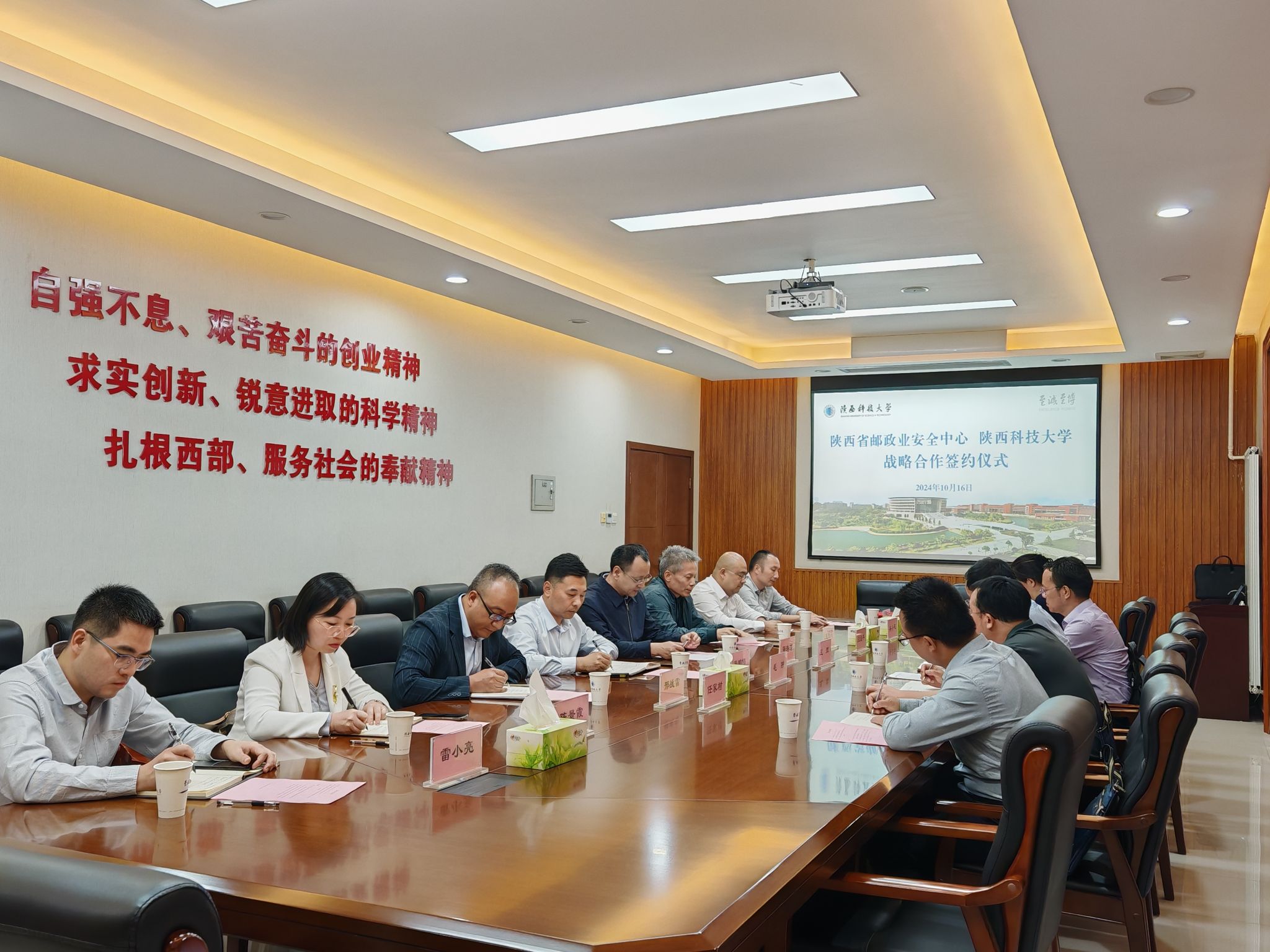 10月16日下午,我校與陜西省郵政業(yè)安全中心戰(zhàn)略合作協(xié)議簽約儀式在我校逸夫樓舉行。陜西省郵政業(yè)安全中心主任王輝、副主任毛翀一行5人參加簽約儀式。前沿科學(xué)與技術(shù)轉(zhuǎn)移研究院常務(wù)副院長(zhǎng)強(qiáng)濤濤,電子信息與人工智能智學(xué)院、經(jīng)濟(jì)與管理學(xué)院相關(guān)專(zhuān)家教授參加儀式。會(huì)議由前沿院副院長(zhǎng)張鵬偉主持。