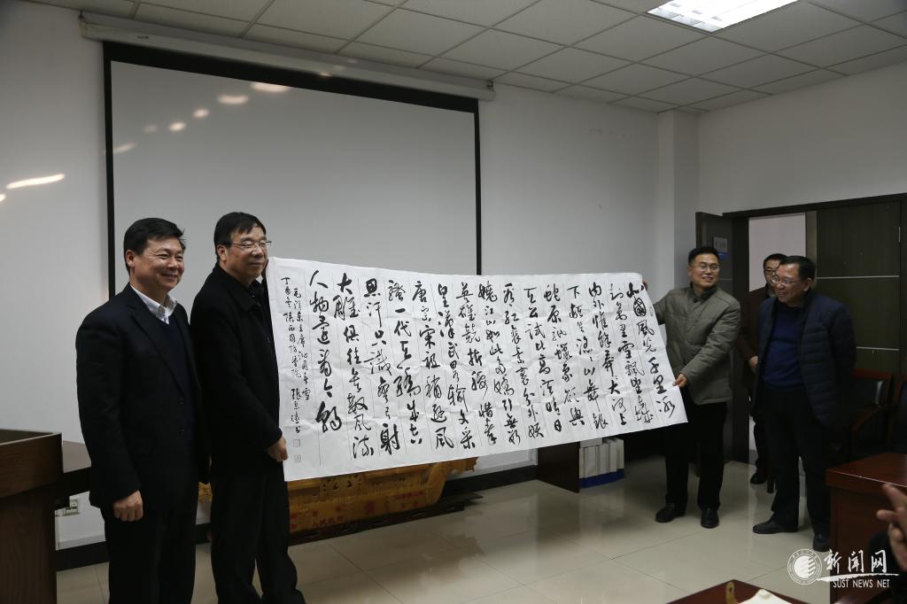 張衛(wèi)平、張權民代表陜西國防工業(yè)職業(yè)技術學院向我校贈送書法作品。