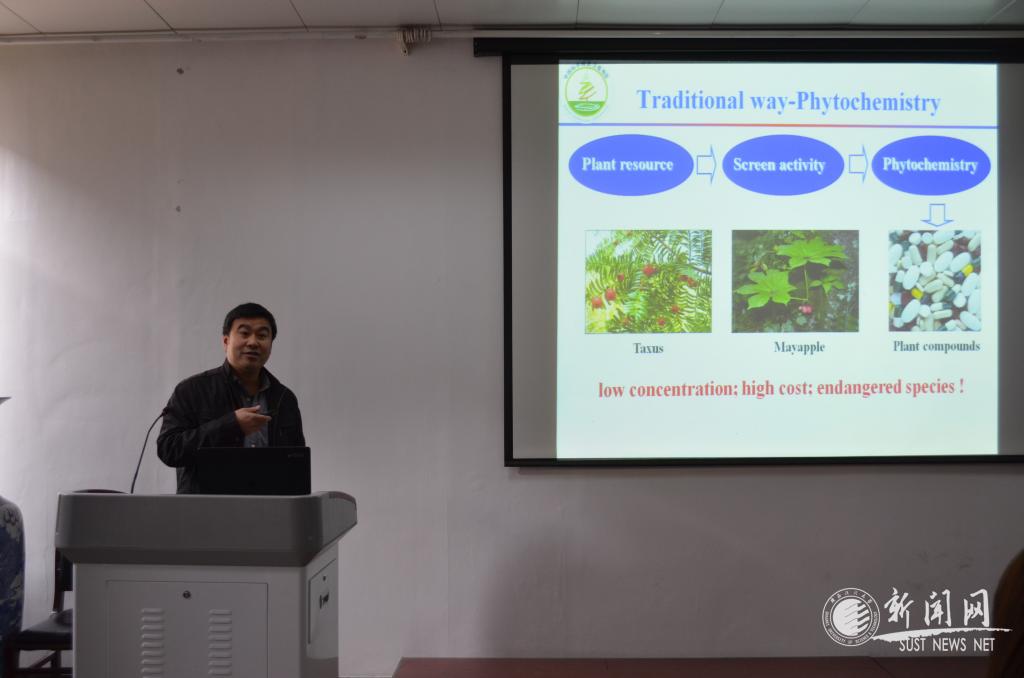應(yīng)食品與生物工程學(xué)院邀請(qǐng),武漢植物園天然藥物生物合成學(xué)研究組首席研究員章焰生博士于3月31日來(lái)我校做學(xué)術(shù)交流,在食品學(xué)院會(huì)議室做了題為“植物源天然產(chǎn)物的合成生物學(xué)-功能基因挖掘”的學(xué)術(shù)報(bào)告。院長(zhǎng)陳雪峰教授主持報(bào)告會(huì),學(xué)院相關(guān)專業(yè)的教師和研究生參加了本次學(xué)術(shù)報(bào)告會(huì)。