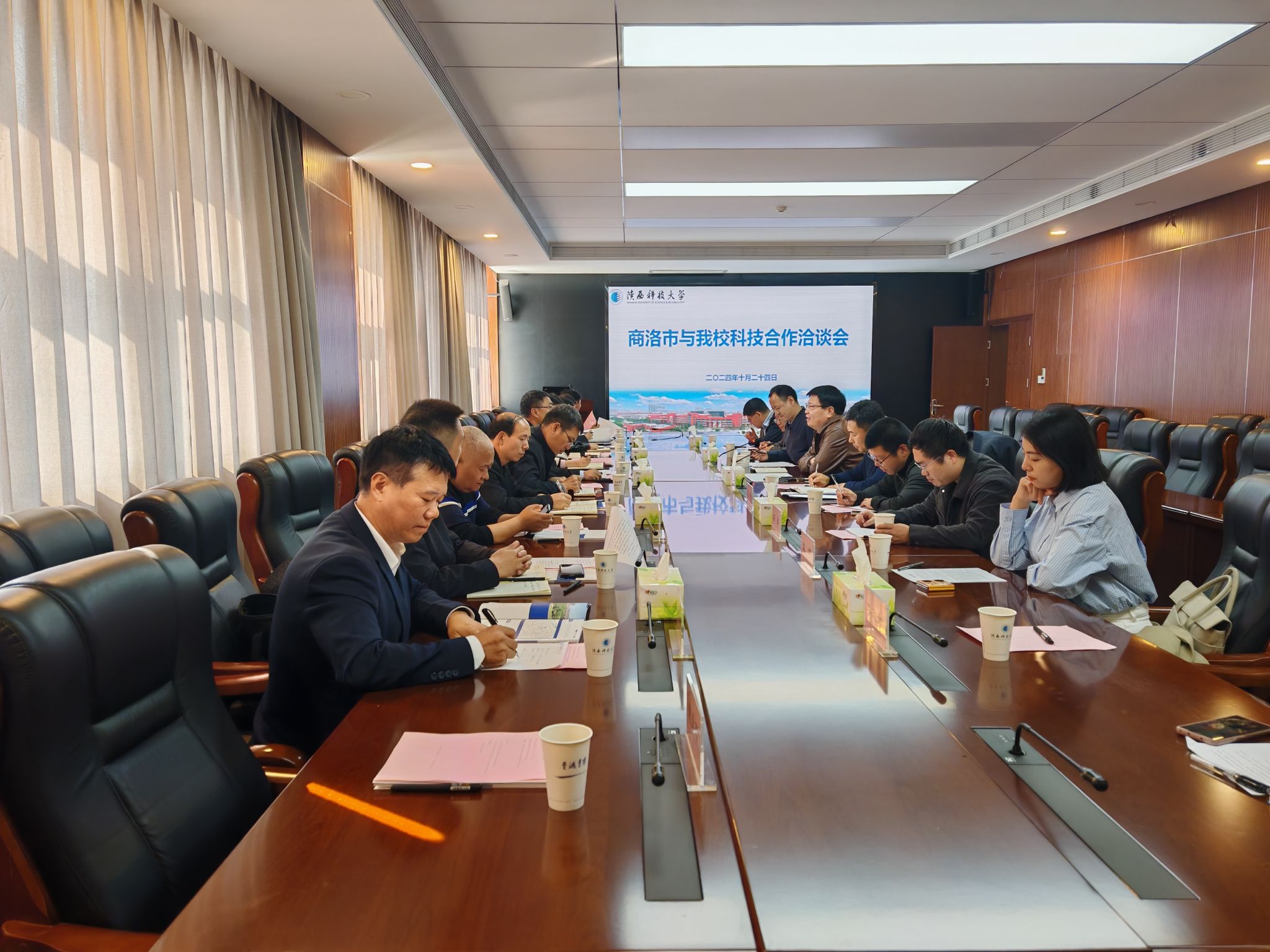 為貫徹落實(shí)我校第三次黨代會(huì)精神,深入實(shí)施服務(wù)社會(huì)創(chuàng)優(yōu)行動(dòng),促進(jìn)產(chǎn)學(xué)研開(kāi)放合作,經(jīng)前期充分溝通,10月24日下午,商洛市科技局黨組書(shū)記、局長(zhǎng)楊博,丹鳳縣科經(jīng)局黨組書(shū)記、局長(zhǎng)付學(xué)華,山陽(yáng)縣科經(jīng)局黨組書(shū)記、局長(zhǎng)陳德軍及部分企業(yè)家代表一行15人來(lái)我校洽談科技成果轉(zhuǎn)化。我校副校長(zhǎng)陸趙情出席并講話,前沿科學(xué)與技術(shù)轉(zhuǎn)移研究院相關(guān)負(fù)責(zé)人,輕工科學(xué)與工程學(xué)院、食品科學(xué)與工程學(xué)院、電氣與控制工程學(xué)院、設(shè)計(jì)與藝術(shù)學(xué)院相關(guān)專(zhuān)家教授出席了洽談會(huì)。會(huì)議由前沿院常務(wù)副院長(zhǎng)強(qiáng)濤濤主持。