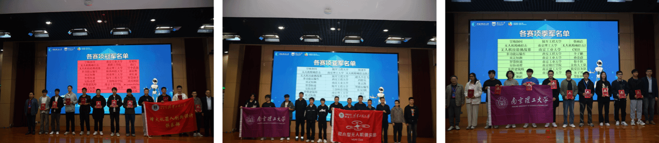 高校組的線下競賽在我校體育館新館進行,包含智慧機械手臂、輪式機器人、足式機器人、空中機器人、探險尋寶機器人、創(chuàng)新創(chuàng)意機器人等多種類型的機器人競賽。來自中國人民解放軍陸軍工程大學、南京理工大學、南京工業(yè)大學、長安大學、西安理工大學、西安郵電大學等24所高校的100多支隊伍、300余名參賽選手參加了比賽。經過激烈的比賽,共決出冠、亞、季軍隊伍各21支。其中線下隊伍各10支,來自南京工業(yè)大學、南京理工大學、河南理工大學、長安大學、陜西科技大學等單位的10支隊伍獲得冠軍;中國人民解放軍陸軍工程大學、南京理工大學、西安工程大學等單位的10支隊伍獲得亞軍;來自南京工業(yè)大學、南京曉莊學院、長安大學等單位的10支隊伍獲得季軍。