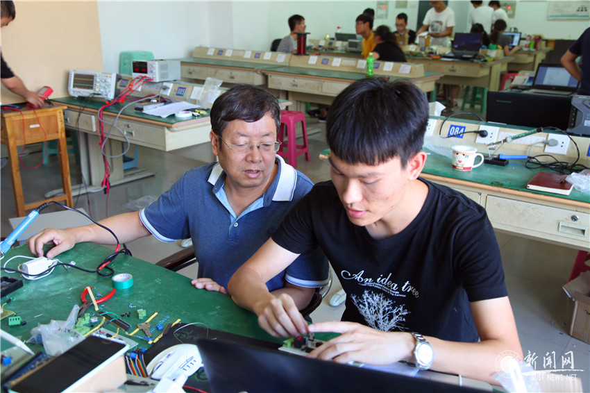 晚上10點鐘,電氣與信息工程學院實驗室依然燈火通明,全國大學生電子設(shè)計競賽陜西賽區(qū)的比賽正在如火如荼地進行著,17個競賽團隊的51名參賽學子不畏酷暑,正聚精會神地準備著各自的競賽作品。張震強、侯勇嚴兩位負責老師表示,電子設(shè)計競賽是全國大學生四大學科競賽之一,學校歷來重視,從3月份開始,我校13名指導老師就通過初步選拔、集中培訓、學生分組、專項培訓、賽前強化等環(huán)節(jié)準備今年的比賽。學生們熱情也極高,從8月9日上午8點至12日晚8點,從選題開始,到出設(shè)計報告、動手制作實物作品,他們分秒必爭,以飽滿的熱情、堅定的信念不斷努力著。張震強表示,電子設(shè)計競賽的舉辦,對我校電子信息類課程的教學改革與促進起到推動作用,也培養(yǎng)了學生的創(chuàng)新能力、實踐操作能力以及團隊協(xié)作精神,這個暑假,師生收獲都很大。