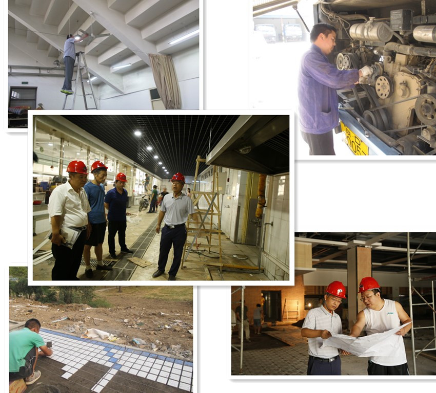 在沁園餐廳暖氣管道改造的工程現(xiàn)場(chǎng),伴隨“嗞嗞”聲響,火花四濺,白煙彌漫,腳手架上的電焊工們正在進(jìn)行著一系統(tǒng)暖氣支管和三系統(tǒng)主管道的焊接改造。后勤集團(tuán)工程維修中心技術(shù)總監(jiān)王笑菲來回巡視著現(xiàn)場(chǎng),薄薄的T恤衫已經(jīng)滲出了汗水。盡管才是上午9點(diǎn)多,可他們開工已經(jīng)有兩個(gè)小時(shí)了。該工程要將一二餐廳中鋪設(shè)在地溝中的采暖供回水系統(tǒng)全部改造為頂部運(yùn)行,其氣密性、壓力要求高,加之現(xiàn)場(chǎng)施工條件復(fù)雜,8月底完工的時(shí)限不可謂壓力不大?!拔覀兠刻煸缟?點(diǎn)開工,晚上7點(diǎn)收工,一刻都不敢耽誤。光是設(shè)計(jì)施工圖紙一項(xiàng),設(shè)計(jì)院的最初方案只有2張,我們根據(jù)現(xiàn)場(chǎng)實(shí)際需要重新修改設(shè)計(jì)就做了11張。”王笑菲說。包括這項(xiàng)最大的工程在內(nèi),后勤集團(tuán)暑期內(nèi)共安排了49項(xiàng)維修改造項(xiàng)目,涉及教學(xué)樓、實(shí)驗(yàn)樓、圖書館、餐廳、浴室、配電室、車管中心等服務(wù)設(shè)施設(shè)備集中的所在。為確保進(jìn)度和質(zhì)量,后勤集團(tuán)不僅明確了各項(xiàng)任務(wù)的時(shí)間表,而且嚴(yán)格規(guī)范過程管理,每個(gè)項(xiàng)目均加強(qiáng)前期論證,確定現(xiàn)場(chǎng)負(fù)責(zé)人員,引入工程監(jiān)理?!笆罴僖詠砗笄谠S多職工奮戰(zhàn)在一線,為的就是新學(xué)期開學(xué)時(shí),能夠給全校師生帶來一個(gè)煥然一新的校園面貌和服務(wù)體驗(yàn)?!焙笄诩瘓F(tuán)總經(jīng)理周文濤堅(jiān)定地說。
