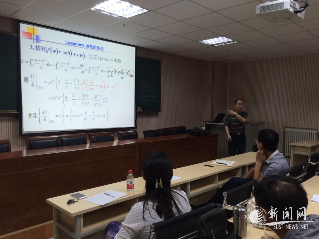 報(bào)告主要介紹了Lyapunov函數(shù)在生物數(shù)學(xué)中的應(yīng)用。李建全教授首先針對微觀的病毒動力學(xué)模型,介紹了在三類不同的反應(yīng)函數(shù)下Lyapunov函數(shù)的構(gòu)造方法;接著針對宏觀的二維SI傳染病模型,介紹了構(gòu)造Lyapunov函數(shù)的思路;最后,將針對具體傳染病模型構(gòu)造的Lyapunov函數(shù)進(jìn)行了推廣。