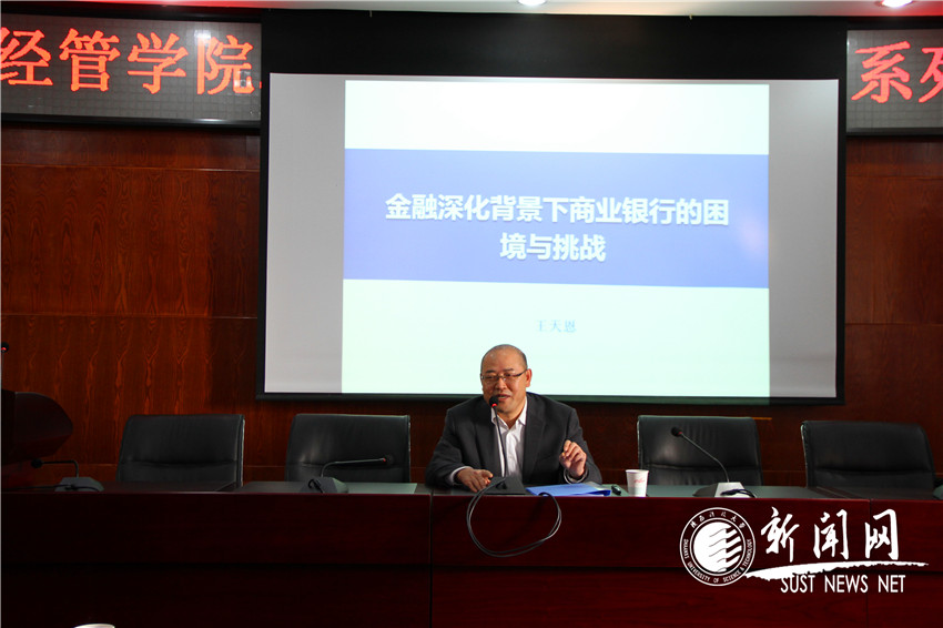 11月1日下午,寧夏銀行西安分行王天恩副行長做客我?!皩熣搲保髁祟}為《金融改革深化背景下商業(yè)銀行的困境與挑戰(zhàn)》的學術報告。經(jīng)濟與管理學院全體教師及研究生聆聽了此次報告,報告會由經(jīng)管學院副院長朱文莉主持。