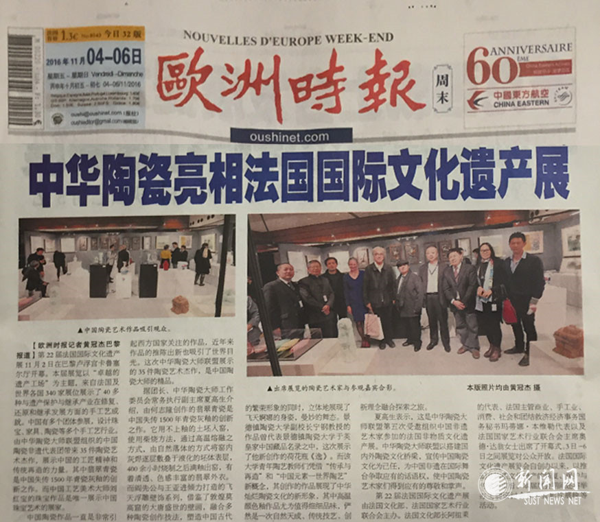 11月2日至6日,第22屆法國國際文化遺產(chǎn)展在法國盧浮宮拉開帷幕,我校設(shè)計(jì)與藝術(shù)學(xué)院高黎老師攜帶陶藝作品《皮影的故事》、《綻放》應(yīng)邀參加此次展覽,并受到《歐洲時(shí)報(bào)》等媒體的報(bào)道。