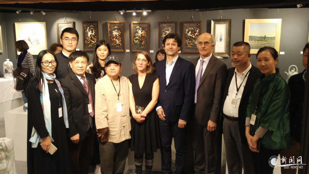 高黎老師(左一)與法國國家藝術(shù)行業(yè)聯(lián)合會(huì)前任(右四)和現(xiàn)任主席AUDE TAHON(左四)及陶瓷藝術(shù)家參觀嘉賓合影
