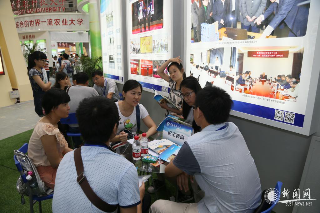 本屆博覽會暨招生咨詢會的主題是“展示辦學(xué)特色,推動創(chuàng)新發(fā)展,激發(fā)高?;盍Α?,旨在通過展覽、交流、咨詢、推介等系列活動,展示陜西高等教育的優(yōu)勢、特色與成就,宣傳國家和我省今年的高考招生政策。為做好學(xué)校招生宣傳工作,我校圍繞“創(chuàng)新、開放、共享,學(xué)科、人才、質(zhì)量”的布展主題,用立體特型展和平面展板相結(jié)合的形式,全面展示了學(xué)校以學(xué)科建設(shè)為龍頭的發(fā)展理念,在教育教學(xué)、科學(xué)研究、黨的建設(shè)等方面取得的突出工作成就,受到廣大考生和考生家長的高度關(guān)注。在學(xué)校展位,校招生辦組織有關(guān)專業(yè)教師為廣大考生提供了熱情的招生服務(wù),前來咨詢的考生及考生家長絡(luò)繹不絕,場面火爆。