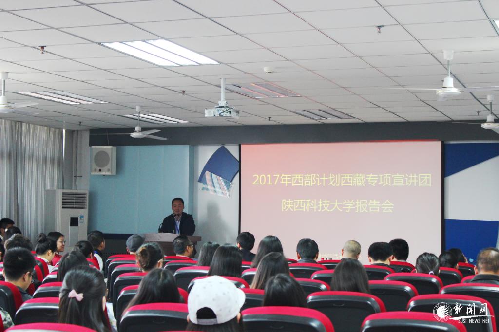 4月12日,2017年西部計(jì)劃西藏專項(xiàng)宣講團(tuán)報(bào)告會(huì)在我校舉行。陜西團(tuán)省委黨組成員、省少先隊(duì)總輔導(dǎo)員、西部計(jì)劃項(xiàng)目辦主任趙大勝,團(tuán)省委志工部調(diào)研員胡曉彤,西藏青年報(bào)社社長(zhǎng)、宣講團(tuán)團(tuán)長(zhǎng)張杰,我校學(xué)工部部長(zhǎng)楊建,團(tuán)委書記鄭東等與來(lái)自西藏自治區(qū)的5名優(yōu)秀西部計(jì)劃志愿者出席,我校100余名師生參加了報(bào)告會(huì)。此次報(bào)告會(huì)以“西部志愿行·青春中國(guó)夢(mèng)”為主題。