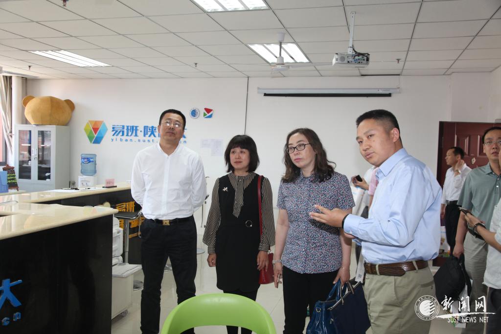 校黨委副書記溫鋒(左一)陪同王莉(左三)等參觀了我校易班學(xué)生工作站
