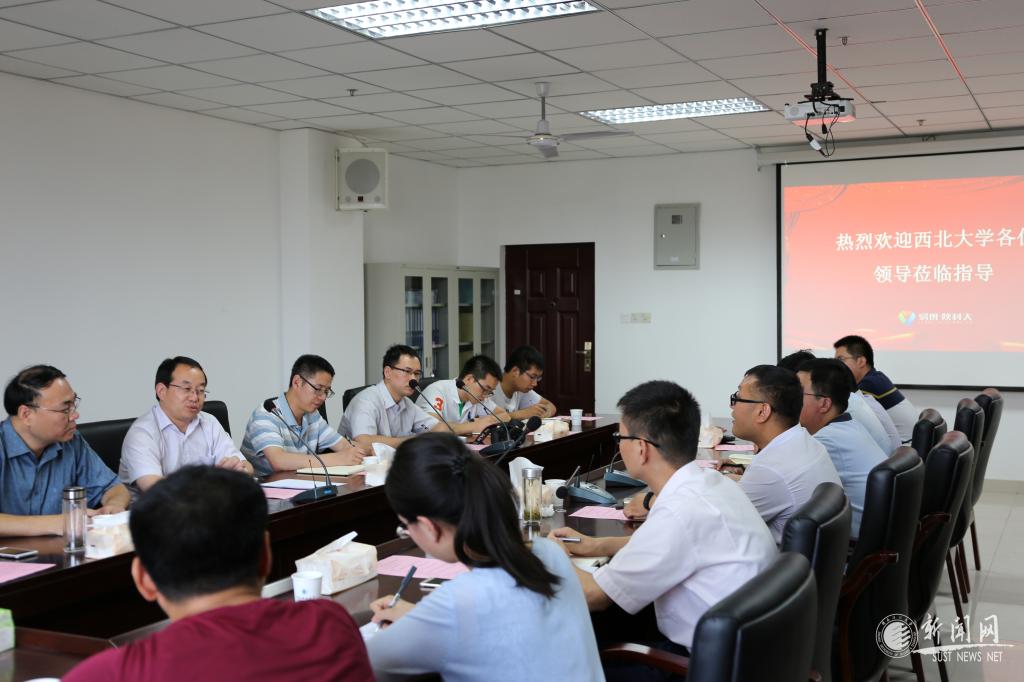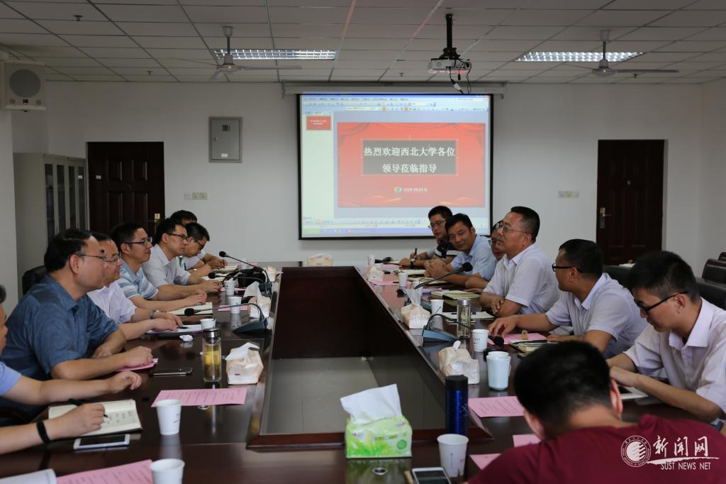 楊建介紹了參會(huì)人員和我校學(xué)生工作的基本情況。董國強(qiáng)介紹了此次交流考察意圖和參會(huì)人員,同時(shí)也對(duì)西北大學(xué)的學(xué)生工作及輔導(dǎo)員隊(duì)伍建設(shè)做了介紹。李曉詳細(xì)介紹了我校大學(xué)生思想政治教育工作思路、舉措、成效和輔導(dǎo)員隊(duì)伍建設(shè)情況。李萌介紹了我校參加省級(jí)、大區(qū)級(jí)和國家級(jí)輔導(dǎo)員職業(yè)能力大賽的備賽情況。易班建設(shè)工作站指導(dǎo)老師陶興旺講解了我校易班建設(shè)情況。