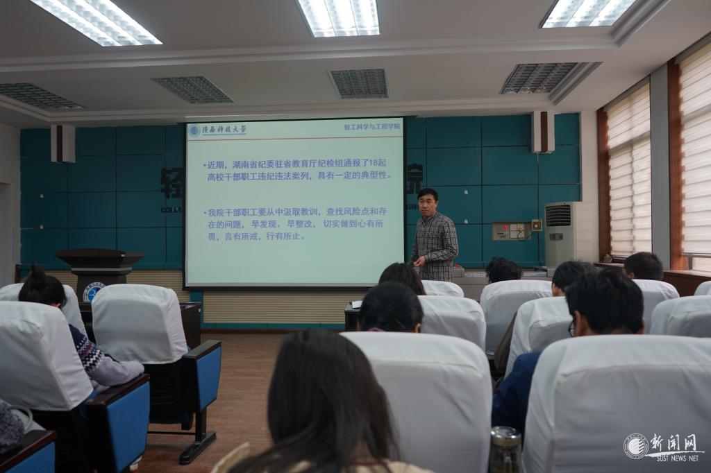4月11日下午,輕工科學(xué)與工程學(xué)院召開學(xué)校思想政治工作會議精神傳達(dá)學(xué)習(xí)會。學(xué)院黨委書記李新平主持會議,學(xué)院全體教師參加會議。會上,李新平傳達(dá)了學(xué)校思想政治工作會議精神和學(xué)校創(chuàng)建省教育系統(tǒng)“文明校園”工作實(shí)施方案,并做了具體工作部署。