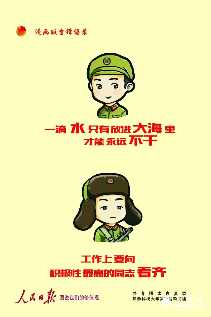 在第54個雷鋒紀(jì)念日之際,我校第三屆研究生支教團(tuán)助力太白縣文明辦、團(tuán)縣委組成開展的“學(xué)雷鋒”志愿服務(wù)活動,為太白縣設(shè)計(jì)了一套“漫畫版”雷鋒語錄,收到熱烈的社會反響,并登上《人民日報(bào)·圖說我們的價(jià)值觀特刊》和華商網(wǎng)等各大媒體。