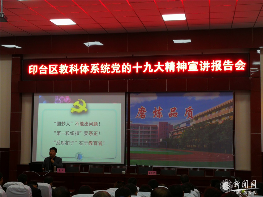 繼在銅川印臺(tái)區(qū)王石凹街道辦進(jìn)行黨的十九大精神宣講后,12月1日,馬克思主義學(xué)院十九大宣講團(tuán)再赴銅川印臺(tái)區(qū),面向印臺(tái)區(qū)教科體局班子成員、基層黨支部委員、局機(jī)關(guān)支部及教研室支部全體黨員等150余人開(kāi)展理論宣講。此次宣講會(huì)由印臺(tái)區(qū)教科體局副局長(zhǎng)王軍宏主持,我校范昕老師主講。