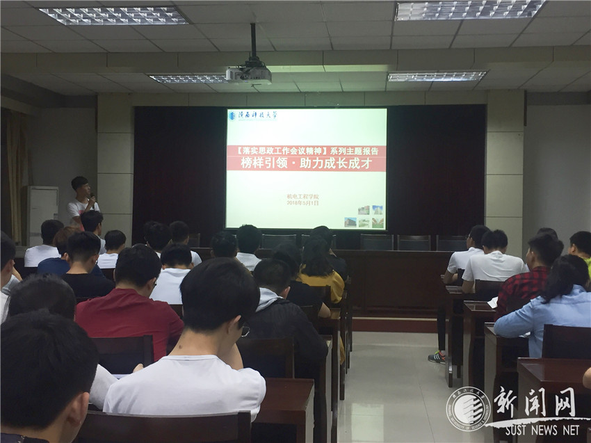召開思政主題報(bào)告會(huì),專項(xiàng)工作聯(lián)動(dòng)育人。為了將學(xué)校思政工作會(huì)議精神化作立德樹人的實(shí)效,機(jī)電學(xué)院推出系列主題報(bào)告會(huì),活動(dòng)以與學(xué)生在校學(xué)習(xí)生活密切相關(guān)的內(nèi)容為主旨,凝練方向,將相繼開展職業(yè)引領(lǐng)、專業(yè)引領(lǐng)、育心引領(lǐng)、思想引領(lǐng)、榜樣引領(lǐng)等五大主題報(bào)告,幫助學(xué)生廓清大學(xué)學(xué)習(xí)生活中的認(rèn)識(shí)、化解日常學(xué)習(xí)生活中的困難、祛除青年成長(zhǎng)發(fā)展中的煩惱,助力學(xué)生成長(zhǎng)成才,努力實(shí)現(xiàn)思政育人的最終目標(biāo)。4月26日舉行了活動(dòng)啟動(dòng)儀式暨首場(chǎng)報(bào)告會(huì),邀請(qǐng)學(xué)校就業(yè)指導(dǎo)中心就業(yè)創(chuàng)業(yè)部主任羅曉婷作了《大學(xué)是道選擇題——大學(xué)生的出路》主題報(bào)告,2017級(jí)各專業(yè)300余名學(xué)生參加。報(bào)告會(huì)圍繞大學(xué)生職業(yè)生涯規(guī)劃要素與階段,通過(guò)深入淺出地講解,強(qiáng)調(diào)“生涯之道在于應(yīng)變之道”,引導(dǎo)學(xué)生志存高遠(yuǎn)、腳踏實(shí)地。5月1日,面向部分預(yù)備黨員、2016和2017級(jí)全體班長(zhǎng),邀請(qǐng)優(yōu)秀學(xué)生黨員代表作了《榜樣引領(lǐng)·助力成長(zhǎng)成才》主題報(bào)告,報(bào)告人圍繞自身學(xué)習(xí)生活實(shí)際、如何立足崗位做奉獻(xiàn)進(jìn)行了交流。