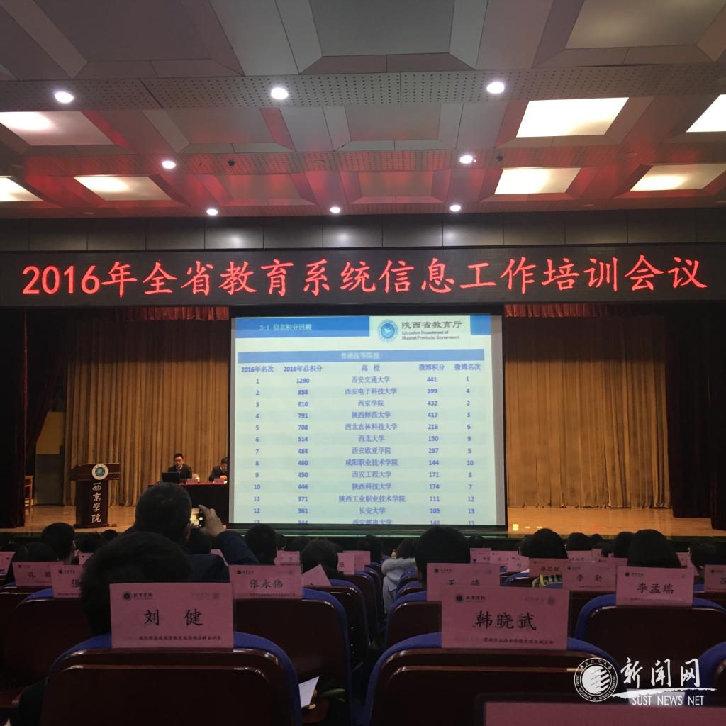 陜西省委高教工委、教育廳11月24日在西京學(xué)院召開(kāi)2016年全省教育系統(tǒng)信息工作培訓(xùn)會(huì)議,我校官方微博、微信被授予“2016年度高校新媒體運(yùn)營(yíng)十佳獎(jiǎng)”。