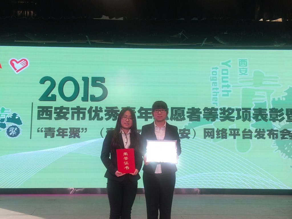 12月30日,由共青團(tuán)西安市委、西安市青年志愿者協(xié)會組織的西安市優(yōu)秀青年志愿者表彰大會在西安市青少年宮舉行。我校資源與環(huán)境學(xué)院“三葉草”青年志愿者服務(wù)團(tuán)榮獲“西安市青年志愿者工作優(yōu)秀組織獎”、食品與生物工程學(xué)院食質(zhì)121班梁寶琳同學(xué)榮獲“西安市優(yōu)秀青年志愿者”。