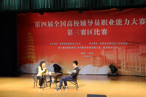 本屆大賽由教育部思想政治工作司主辦,全國高校輔導(dǎo)員工作研究會承辦,2015年1月啟動,分初賽、復(fù)賽和決賽三個階段。初賽由各省組織舉辦,復(fù)賽共分六個賽區(qū),陜西師范大學(xué)為復(fù)賽第三賽區(qū)的承辦點,共有來自陜西、重慶、四川、甘肅、青海、寧夏、新疆及新疆生產(chǎn)建設(shè)兵團共八個省區(qū)80名選手參賽。