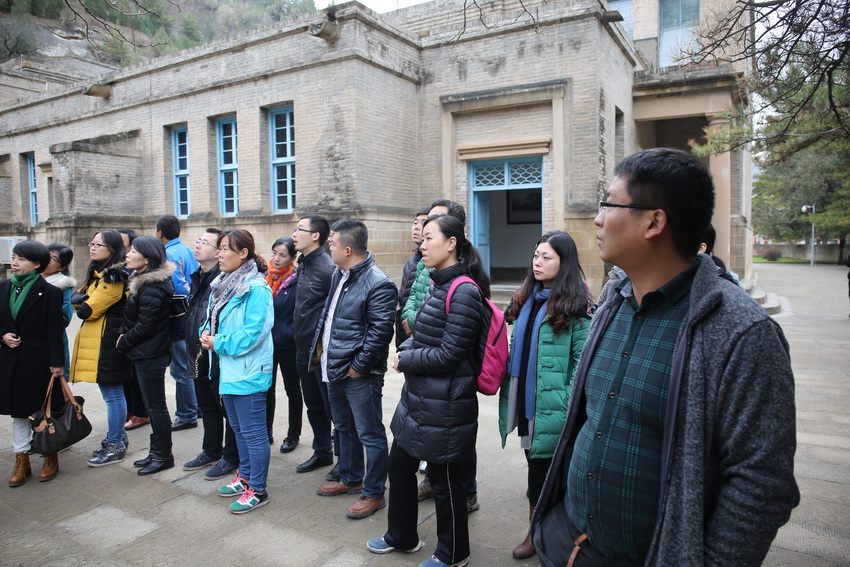 在延安革命紀念館,青年教師們重溫了中國共產(chǎn)黨在陜北十三年戰(zhàn)斗、生產(chǎn)的光輝歷史,珍貴的圖文資料及革命文物把大家?guī)Щ亓巳f里長征、吳起會師、西安事變、山西會戰(zhàn)、南泥灣墾荒、轉(zhuǎn)戰(zhàn)陜北等一幅幅波瀾壯闊的歷史畫面。人民軍隊的英勇頑強、革命先烈的流血犧牲、邊區(qū)人民的無私支持、軍民一家親的血濃于水的感情……一幕幕感人場景,無不令人心生敬意、為之動容。近一個小時的講解,大家神情肅穆,細心傾聽,發(fā)自內(nèi)心地敬仰中國共產(chǎn)黨領(lǐng)導(dǎo)的中國革命的光榮偉大,感嘆延安精神的光照千秋。在八路軍繳獲日軍武器的展臺前,一名工科背景的青年教師看得很仔細。他說,日軍的“三八”大蓋、重機槍、迫擊炮等裝備從工藝上看非常精良,反映出七、八十年前日本的工業(yè)已經(jīng)很發(fā)達了,但展出的八路軍的武器裝備中只有大刀長矛、工藝粗陋的漢陽造、老套筒,武器裝備之懸殊不可思議。在民族危亡關(guān)頭,人民軍隊硬是用忠誠和意志將生死置之度外、和人民共進退打敗侵略者,并進而贏得全國解放。他們?nèi)娜鉃槿嗣穹?wù)的精神和自力更生艱苦奮斗的精神是延安精神的主要內(nèi)涵之一,是中華民族精神的最重要構(gòu)成部分,應(yīng)該成為我們青年一代的精神文化體系最重要的思想資源進行傳承和發(fā)展。