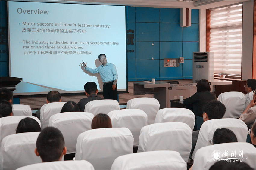 我校杰出校友、中國(guó)皮革協(xié)會(huì)名譽(yù)理事長(zhǎng)蘇超英于5月8日作客我校60周年校慶“杰出校友·企業(yè)家論壇”,為我校相關(guān)專業(yè)教師、研究生和本科生作了一場(chǎng)題為“中國(guó)的皮革制鞋業(yè)”的學(xué)術(shù)報(bào)告。報(bào)告會(huì)由輕工科學(xué)與工程學(xué)院副院長(zhǎng)呂斌主持。