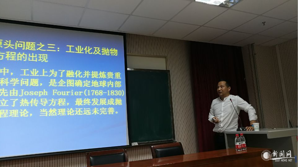 郭真華教授首先介紹了偏微分方程航空航天、石油勘探,人口預(yù)測(cè)、天氣預(yù)報(bào)、龍卷風(fēng)成因等方面的廣泛應(yīng)用(這些問題的研究都離不開偏微分方程,在工程力學(xué)里多數(shù)問題都要解偏微分方程,可以說偏微分方程是描述現(xiàn)實(shí)世界的有力工具),隨后,緊貼國際研究前沿,郭教授結(jié)合自己的研究方向,介紹了Navier-Stokes方程研究方面的最新成果,包括在處理Navier-Stokes方程時(shí)由低維空間到高維空間,由弱解到準(zhǔn)確解等問題。最后,郭教授對(duì)西北大學(xué)數(shù)學(xué)學(xué)院及西北大學(xué)非線性科學(xué)研究中心的發(fā)展歷史和取得的研究成果做了簡要的介紹,與師生進(jìn)行了廣泛的交流。