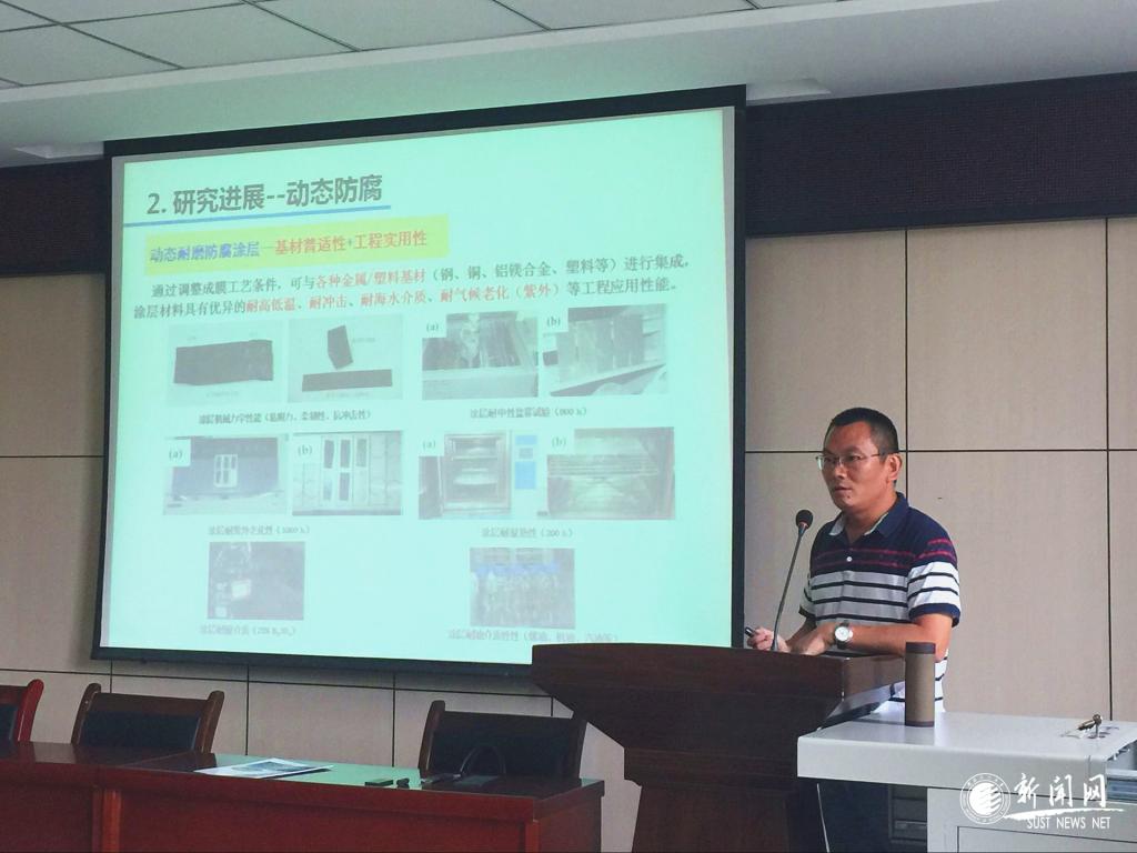 羅荘竹教授的報(bào)告圍繞“南海海洋縱深開發(fā)”中遇到的高溫、高濕、高鹽、高紫外熱帶海洋環(huán)境的動態(tài)磨損與腐蝕協(xié)同損傷、沖蝕腐蝕、流體阻力及海生物污損等問題,創(chuàng)新性地提出一種自潤滑防腐功能一體化高分子合金涂層構(gòu)筑新原理,系統(tǒng)地介紹了動態(tài)耐磨防腐涂層制備與使役的科學(xué)問題,并探討了動態(tài)耐磨防腐功能一體化涂層材料領(lǐng)域產(chǎn)學(xué)研用及軍民融合的新模式。羅教授的報(bào)告深入淺出,結(jié)合自己20的科研經(jīng)驗(yàn),闡述了一個科研者如果要獲得成功,必須具有工匠精神,把心沉下來,努力做好每件事。報(bào)告后羅教授與參會的教師和同學(xué)展開了熱烈的討論,羅教授的報(bào)告進(jìn)一步拓寬了師生在相關(guān)領(lǐng)域的思路,師生們收獲頗豐。