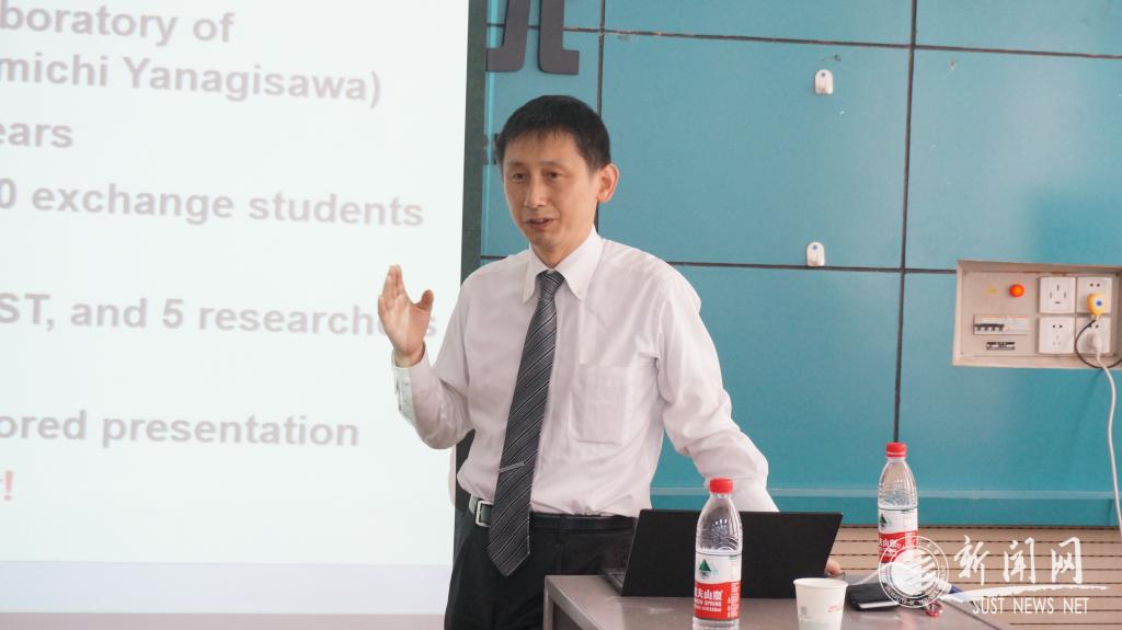 藤原拓教授的報(bào)告圍繞“ Removal of Pharmaceuticals from Wastewaters by aRotating Advanced Oxidation Contactor with Composite TiO2-Zeolite Sheet”展開,從環(huán)境的角度介紹了食物、水、能量之間的密切關(guān)系,以及如何將被污染的水源變?yōu)榭梢怨┤祟愔貜?fù)使用的水資源,即“變廢為寶”;隨后介紹了能源節(jié)約廢水處理技術(shù)和農(nóng)業(yè)系統(tǒng)中創(chuàng)新型水資源管理體系。報(bào)告中還講到光催化在水污染治理中的重要作用,利用光催化法將污染水體中的有機(jī)物降解得到最終產(chǎn)物水和二氧化碳,接著介紹了旋轉(zhuǎn)高級(jí)氧化接觸器的發(fā)展現(xiàn)狀以及實(shí)際應(yīng)用意義。此外,藤原拓教授還指出在科學(xué)迅速發(fā)展的今天,對(duì)于廢水處理,將會(huì)有諸多的解決方法。最后,藤原拓教授希望與我校優(yōu)秀師生能有更多的交流學(xué)習(xí)機(jī)會(huì)并對(duì)我校60周年校慶表示衷心的祝賀。