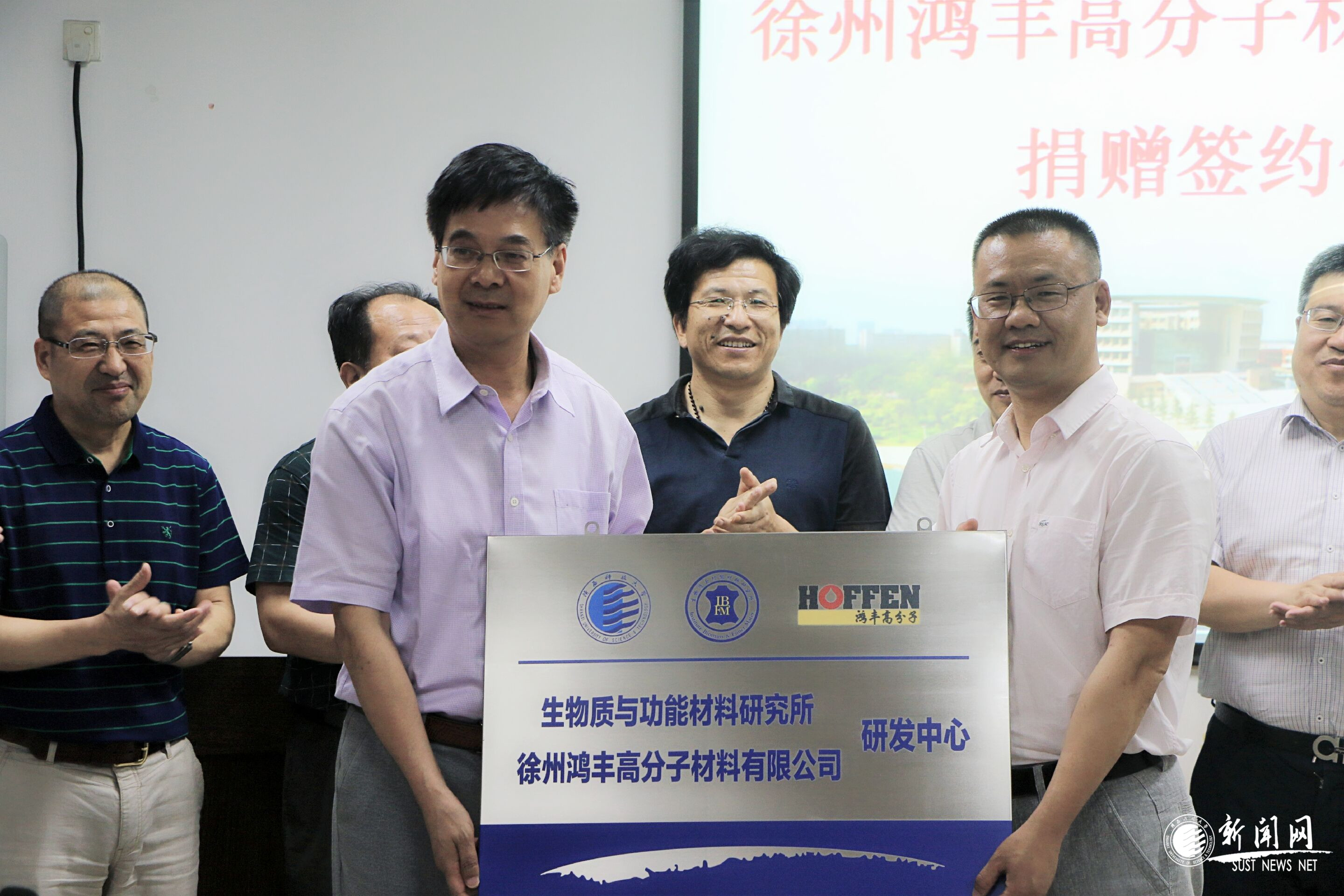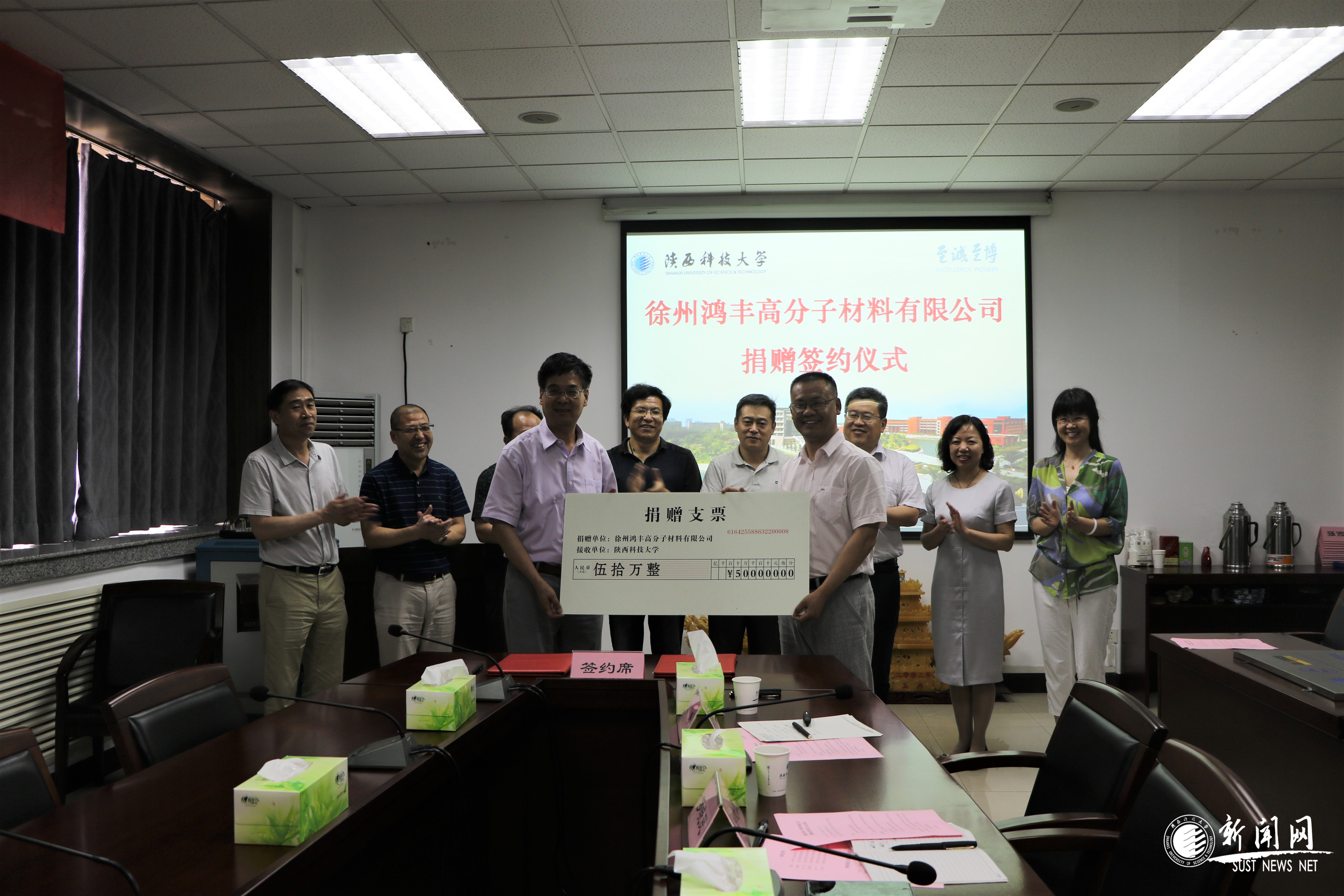 在隨后的捐贈(zèng)簽約儀式上,徐州鴻豐高分子材料有限公司向我校捐贈(zèng)了50萬(wàn)元,用于共建實(shí)驗(yàn)室建設(shè)和學(xué)生獎(jiǎng)學(xué)金,并與陜西科技大學(xué)生物質(zhì)與功能材料研究所簽訂了雙方共建“生物質(zhì)與功能材料研究所/徐州鴻豐高分子材料有限公司—研發(fā)中心”協(xié)議。