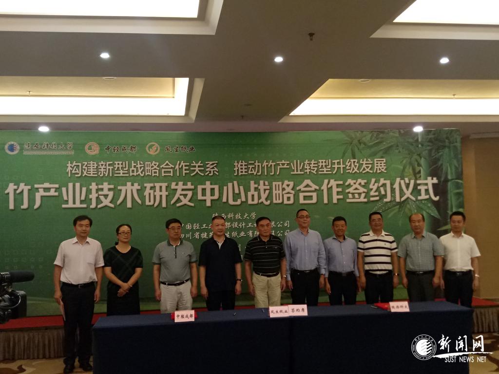 陜西科技大學(xué)與四川省犍為鳳生紙業(yè)有限責(zé)任公司、中國(guó)輕工業(yè)成都設(shè)計(jì)工程有限公司共同發(fā)起成立竹產(chǎn)業(yè)技術(shù)研發(fā)中心,旨在發(fā)揮各自在人才培養(yǎng)、科研、技術(shù)、生產(chǎn)實(shí)踐方面的優(yōu)勢(shì),積極開展竹資源深度開發(fā)研究,進(jìn)行技術(shù)創(chuàng)新、科研成果有效轉(zhuǎn)化,達(dá)到資源整合、優(yōu)勢(shì)互補(bǔ)、合作共贏的目的,共同做大做強(qiáng)竹漿造紙產(chǎn)業(yè)。