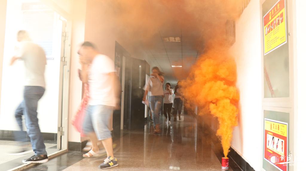 本次消防演練包括消防安全知識培訓和突發(fā)事件疏散演練兩部分。化工學院高度重視此次活動,于6月20日下午為全體教師及研究生進行了集中應急演練疏散培訓,安排部署指導教師、學生、工作人員在演練中的工作分工及疏散演練相關(guān)事宜,并觀看了火災安全教育片。6月21日上午10點,伴隨著煙霧彈點燃升起的濃濃煙霧,火災警報哨聲迅速響起,演練總指揮,各樓梯口、轉(zhuǎn)角處安全員,救護責任人等相關(guān)人員立即到崗,指揮師生拿浸水毛巾捂住口鼻,并按照疏散線路有序地撤離至樓外安全地帶。全體師生撤離共用時1分38秒,整個演練過程工作人員操作到位,師生疏散及時有序,達到了演練效果。