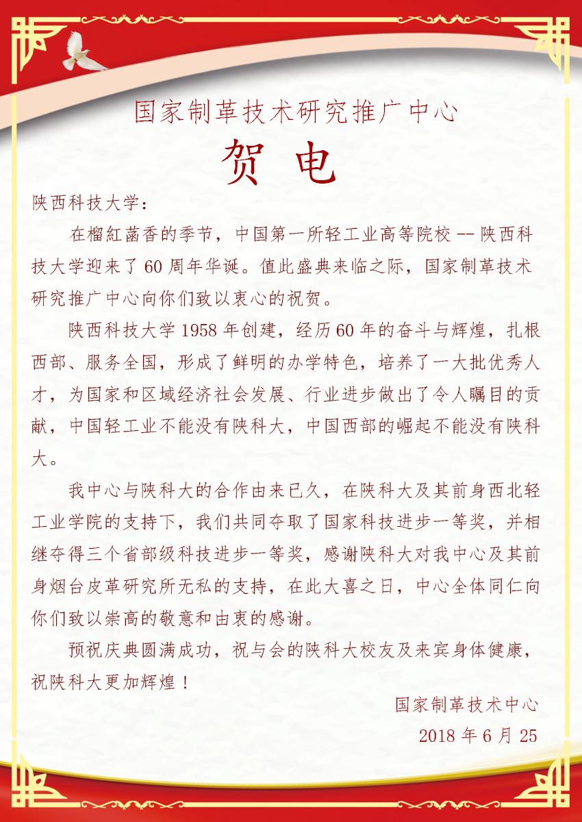 【甲子校慶】國家制革技術研究推廣中心賀電