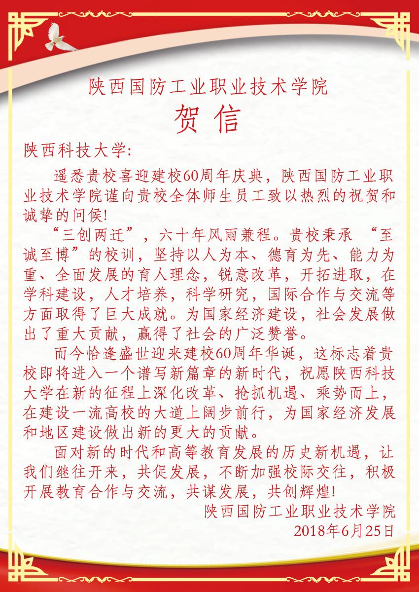 【甲子校慶】陜西國防工業(yè)職業(yè)技術(shù)學(xué)院賀信
