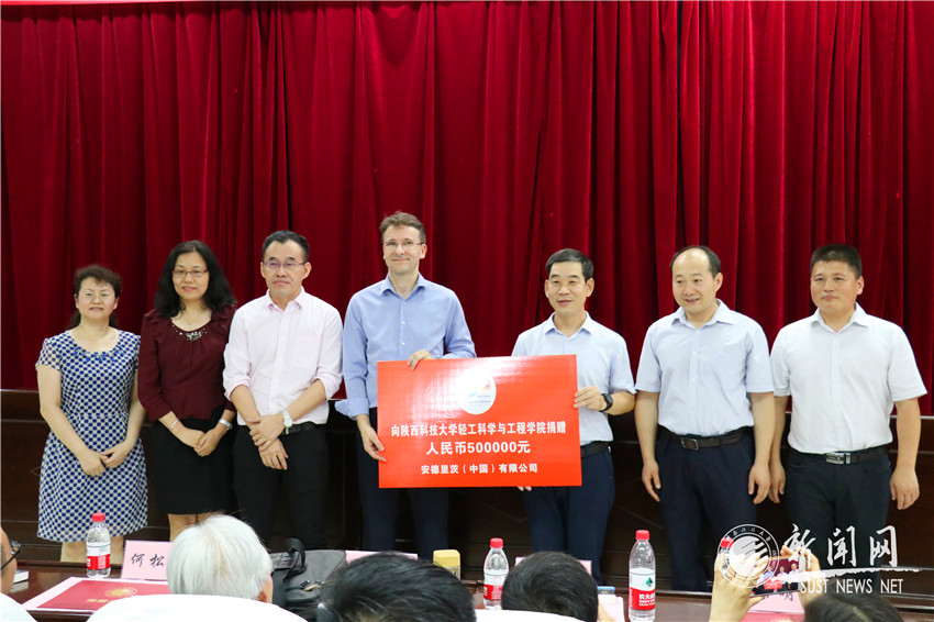 在隨后的捐贈儀式上,安德里茨(中國)有限公司向輕工學(xué)院捐贈了50萬元,用于冠名實驗室(安德里茨中國-纖維新材料與綠色造紙實驗室),輕工學(xué)院院長弓太生代表學(xué)院為安德里茨中國有限公司頒發(fā)了捐贈證書,副院長張素風(fēng)教授代表實驗室接受了企業(yè)冠名實驗室的授牌捐贈。