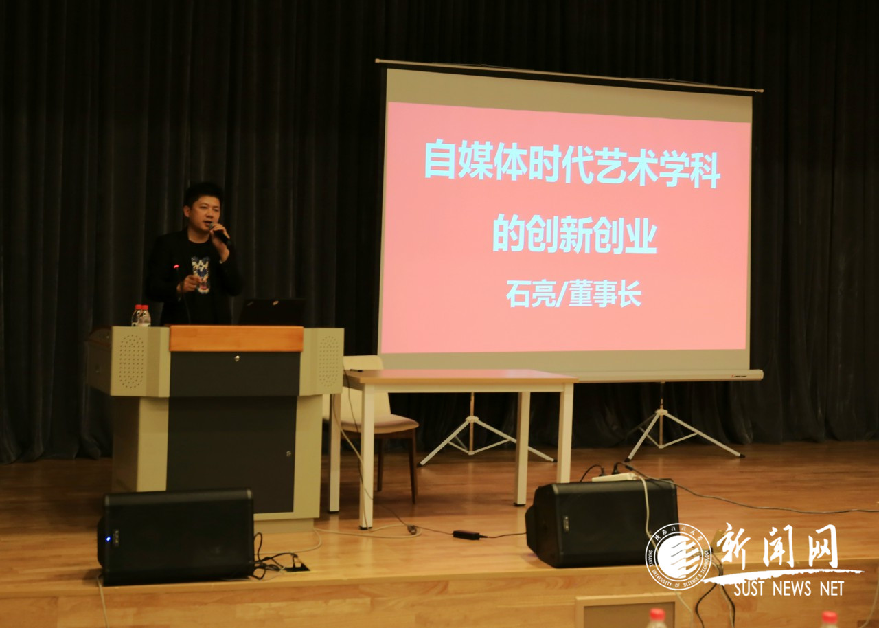 6月26日下午5時,擇眾傳媒股份有限公司董事長、我校校友石亮,做客我校“未央導(dǎo)師論壇”,在人文樓B座五樓多功能廳做了《自媒體時代藝術(shù)學(xué)科的創(chuàng)新創(chuàng)業(yè)》的主題報告。設(shè)計與藝術(shù)學(xué)院相關(guān)專業(yè)師生、部分返校校友到場參加報告會,副院長米高峰教授擔(dān)任主持人。