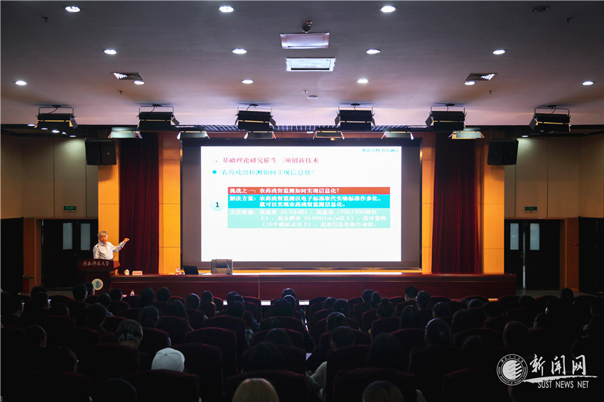 中國工程院院士龐國芳院士應(yīng)邀于9月16日上午做客我校院士論壇,在教師發(fā)展中心學術(shù)報告廳做了題為“信息化引領(lǐng)食品安全農(nóng)藥殘留檢測技術(shù)創(chuàng)新發(fā)展”的專題報告。校長馬建中、學科辦和食品與生物工程學院有關(guān)負責人及師生代表500余人參加了本次報告會。報告會由副校長王學川主持。