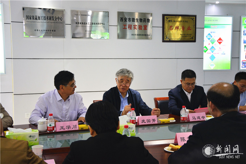 專題報告之后,在馬建中、王學川等的陪同下,龐國芳院士參觀了我校校史館、中國輕工業(yè)博物館、現(xiàn)代儀器分析中心以及食品學院、輕工學院的有關(guān)實驗室;聽取了食品學院學科建設(shè)總體情況,“食品質(zhì)量安全控制”與“食品營養(yǎng)與健康”團隊建設(shè)情況等匯報,并與食品學院骨干教師進行了座談,提出了建設(shè)性意見。他勉勵學院和教師要堅定信心,沉下心去搞科研,不斷鞏固和擴大區(qū)域特色和優(yōu)勢,努力做到傳承基礎(chǔ)上的創(chuàng)新,力爭取得更大更好的成績。