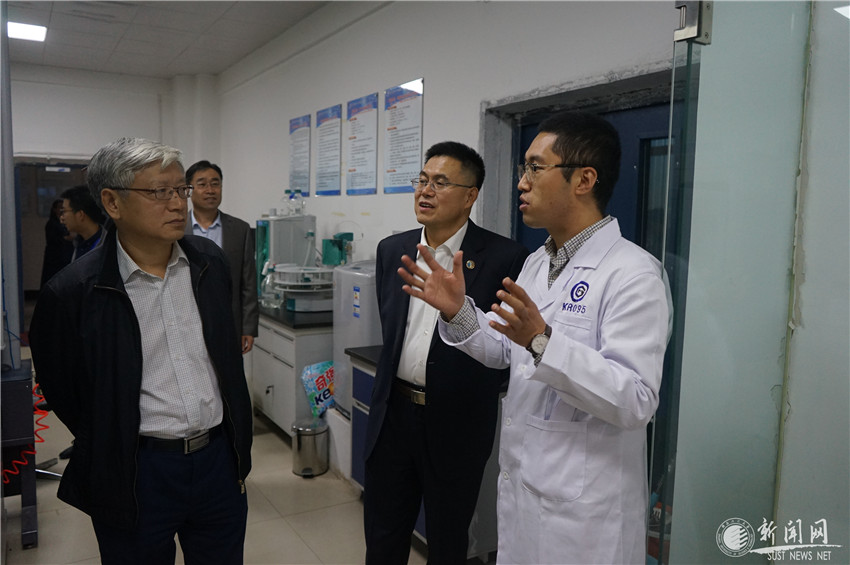 李新平向謝院士簡要介紹了輕工學院的歷史和學科發(fā)展現(xiàn)狀,謝院士對學院師資隊伍建設(shè)和研究生培養(yǎng)情況進行了詳細了解。隨后,謝劍平院士結(jié)合自己的研究,與大家就“生物質(zhì)化學品與材料在煙草行業(yè)的應(yīng)用”進行了深入探討,使大家認識到,無論是高性能紙基材料,還是生物質(zhì)化學品,在優(yōu)化卷煙的性能和進一步降焦減害上都有很大的研究空間,對拓寬學院教師的科研方向起到了積極的作用。此外,謝院士還對學院的學科發(fā)展提出了寶貴的意見和建議。最后,謝院士參觀了輕工學院的輕化工程國家級實驗教學示范中心、省級重點實驗室和分析測試中心,對實驗室管理和如何充分提高儀器設(shè)備效率等提出了寶貴意見和建議。