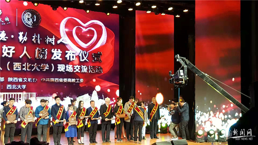 當(dāng)天,在西北大學(xué)舉辦了陜西高教系統(tǒng)好人事跡展,集中展出了2014年以來全省高教系統(tǒng)涌現(xiàn)出的全國道德模范、中國好人、陜西好人等的先進(jìn)事跡。在陜西好人榜發(fā)布儀式暨道德模范與身邊好人現(xiàn)場交流活動(dòng)上,播放展示了部分高教系統(tǒng)中國好人、陜西好人代表的感人事跡,現(xiàn)場師生表演了精彩的文藝演出,表達(dá)了青年一代建功立業(yè)新時(shí)代的青春熱情。國家級(jí)教學(xué)名師、陜西省崗位學(xué)雷鋒標(biāo)兵、西北大學(xué)耿國華教授為俞茂宏、王輝、李萌等中國好人、陜西好人代表頒發(fā)了道德傳家寶。
