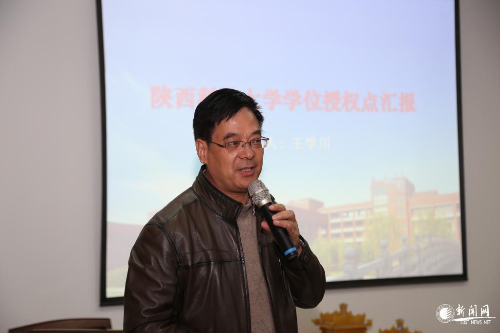 王學(xué)川匯報(bào)了我校學(xué)位點(diǎn)建設(shè)情況:學(xué)位點(diǎn)的發(fā)展歷程和層次規(guī)模,學(xué)位點(diǎn)建設(shè)和內(nèi)涵發(fā)展過程中的多項(xiàng)舉措,及我?!肮虄?yōu)、強(qiáng)特、扶需、重基、創(chuàng)新”的學(xué)科建設(shè)思路等。