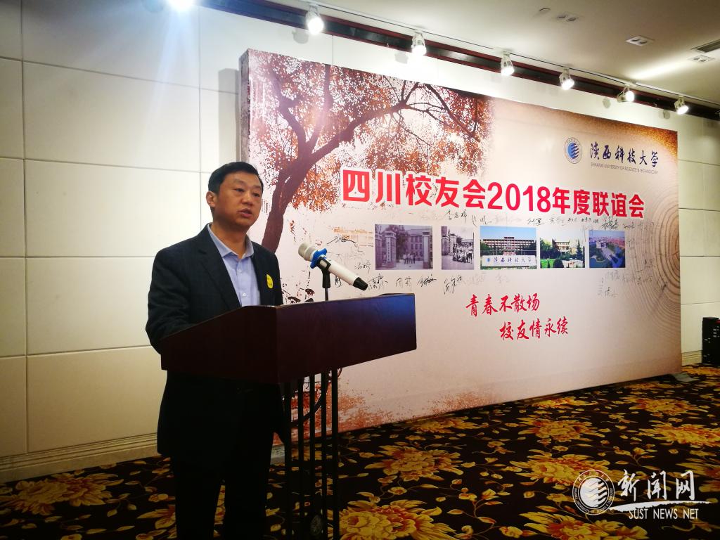 在致辭中,黃劍鋒對四川校友會第一屆理事會4年來所做的工作給予高度評價,向在川校友長期以來對學校的關心和支持表示衷心的感謝。隨后,向與會校友介紹了學校近年來在學科建設、科學研究、師資隊伍、人才培養(yǎng)等方面所取得的一系列成績及學?!叭齽?chuàng)兩遷”精神。最后,他希望四川校友會不斷加強自身建設,更好地為校友和母校事業(yè)發(fā)展服務,希望廣大校友繼續(xù)為陜科大增光添彩,繼續(xù)關心支持母校的建設和發(fā)展。