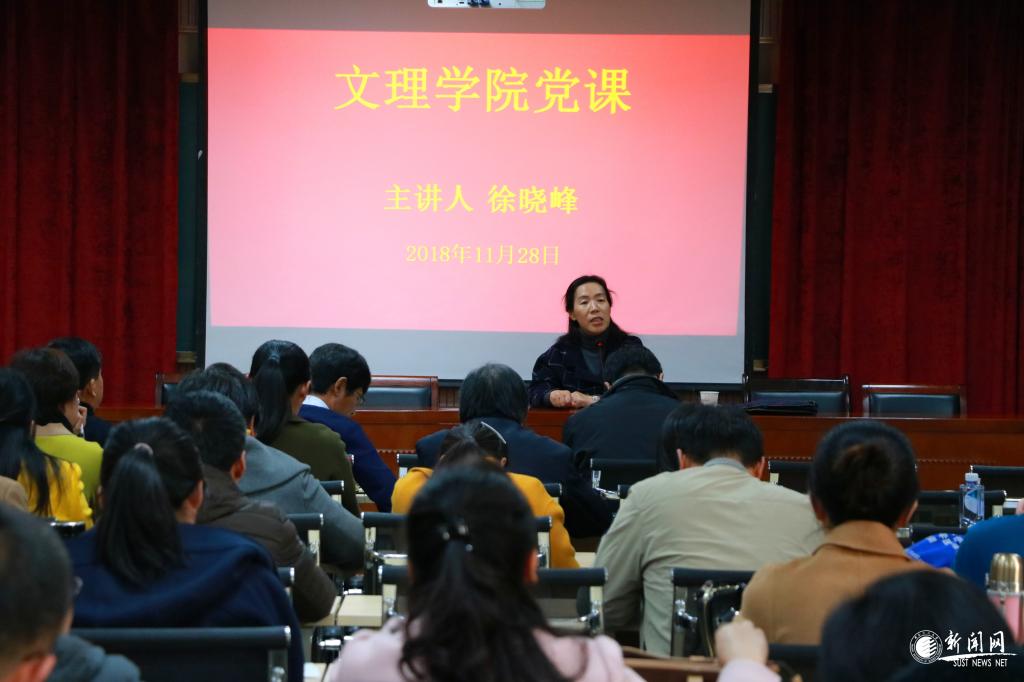 為深入推進(jìn)“兩學(xué)一做”學(xué)習(xí)教育常態(tài)化制度化,“三會一課”制度規(guī)范落實(shí),按照新時(shí)代高校黨建“雙創(chuàng)”工作任務(wù)要求,有效提升基層黨組織的組織能力,提高黨員的黨性修養(yǎng),近日,總會計(jì)師徐曉峰應(yīng)邀參加了文理學(xué)院教工黨支部的“兩學(xué)一做”學(xué)習(xí)教育實(shí)踐活動(dòng)并講黨課。本次黨課以不忘初心、牢記使命、以史鑒今為題,通過學(xué)習(xí)中華民族歷史偉人、英雄人物的事跡來弘揚(yáng)愛國主義精神,提高黨員愛國意識,加強(qiáng)黨員黨性修養(yǎng)。