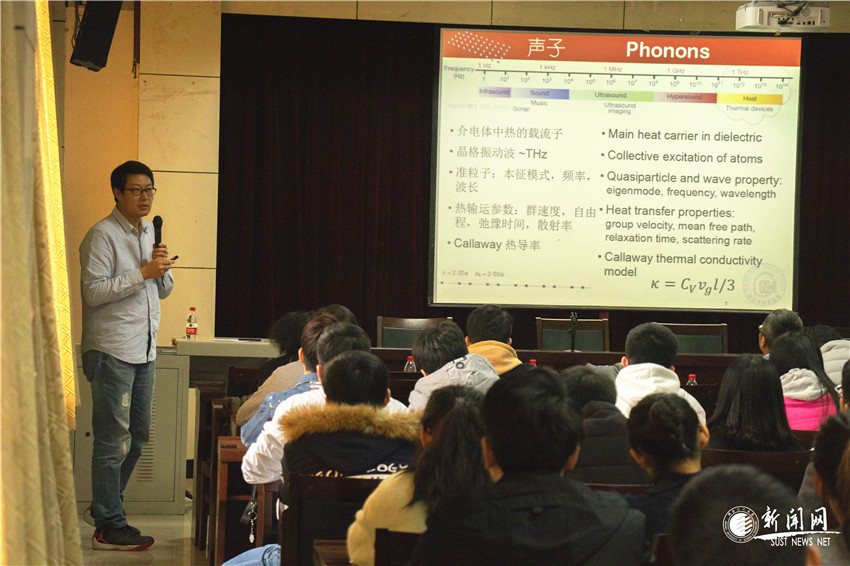 楊諾教授長期致力于納米尺度能量轉換和利用的熱傳導研究。報告會上,楊教授圍繞“納米尺度熱能輸運與轉換”的主題,分四個部分:熱導率調控、熱輸運、熱能利用和熱電轉換,為與會師生介紹了他領銜的納米傳熱實驗室最新的科研成果。