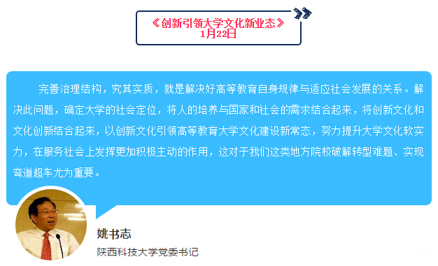 12月24日,中國教育報第六版“高教周刊”發(fā)布《2018年度報告》,在《2018年高端聲音》版塊,盤點全年由中國高等教育學(xué)會會長、清華大學(xué)校長、中國人民大學(xué)校長、中科院院士等專家學(xué)者在該報發(fā)表的30篇署名文章,我校黨委書記姚書志署名文章《創(chuàng)新引領(lǐng)大學(xué)文化新業(yè)態(tài)》入榜。
