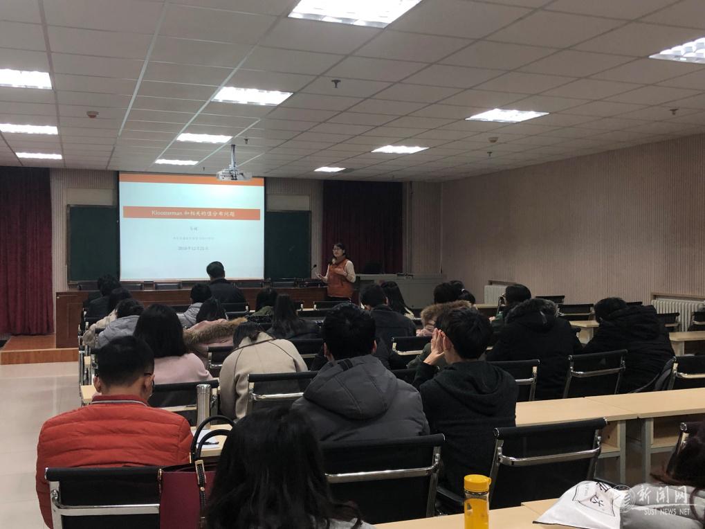 易媛教授在報(bào)告中指出,Kloosterman和及其相關(guān)問題的研究在現(xiàn)代解析數(shù)論以及自守形式理論中占有極其重要的位置,關(guān)于Kloosterman和及其算術(shù)性質(zhì)是數(shù)論研究中關(guān)注的重要問題之一。易媛教授介紹了有關(guān)Kloosterman和均值分布的結(jié)果及其相關(guān)問題研究。報(bào)告會(huì)后,易媛教授耐心解答了老師和學(xué)生的問題,并結(jié)合自己做研究、寫基金項(xiàng)目及培養(yǎng)研究生等方面的心得和經(jīng)驗(yàn)與老師們進(jìn)行了深入交流。